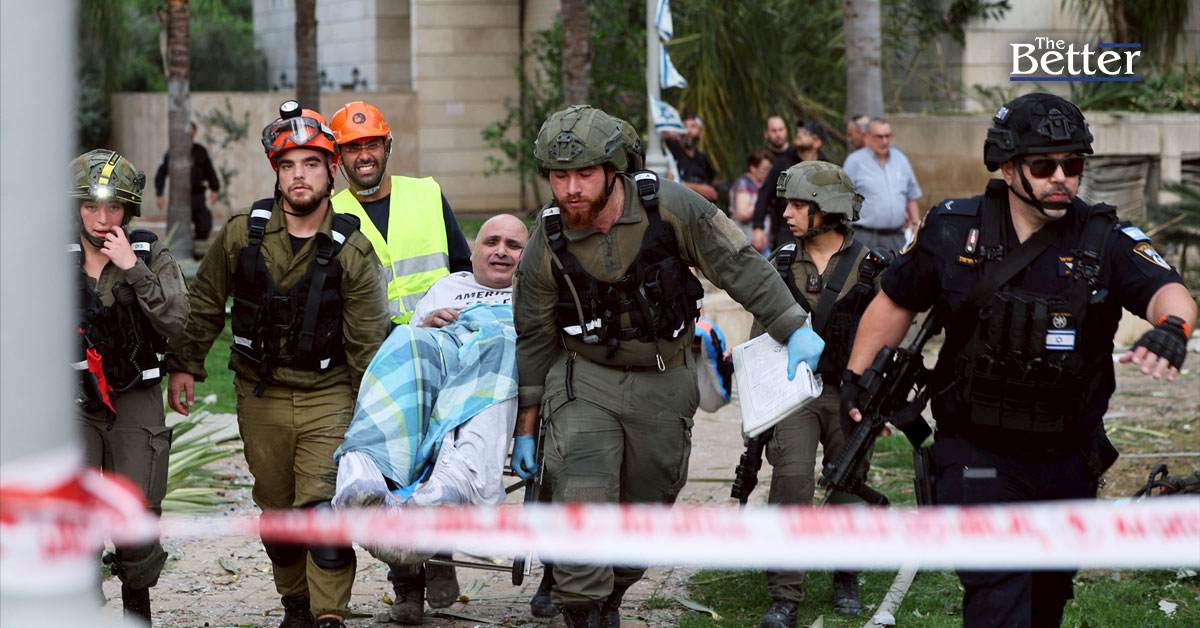 TOPSHOT - เจ้าหน้าที่กู้ภัยอพยพชายคนหนึ่งออกจากอาคารที่ได้รับความเสียหายหลังจากถูกขีปนาวุธอิหร่านโจมตีในเมืองเปตาห์ติกวาของอิสราเอล ทางตะวันออกของเทลอาวีฟ เมื่อวันที่ 16 มิถุนายน 2025 กองทัพอิสราเอลได้เตือนเมื่อวันที่ 16 มิถุนายนว่าจะมีขีปนาวุธชุดใหม่จากอิหร่านโจมตี ขณะที่นักข่าว AFP รายงานว่าเกิดเสียงระเบิดดังในกรุงเยรูซาเล็มและเกิดไฟไหม้นอกเมืองชายฝั่งไฮฟา ส่วนกองทัพโพสต์ข้อความบนแอป Telegram โดยใช้คำย่อของชื่อทางการ ว่า "เมื่อไม่นานมานี้ กองทัพอิสราเอลระบุได้ว่ามีขีปนาวุธที่ยิงมาจากอิหร่านมุ่งหน้าสู่ดินแดนของรัฐอิสราเอล" (ภาพโดย Jack GUEZ / AFP)