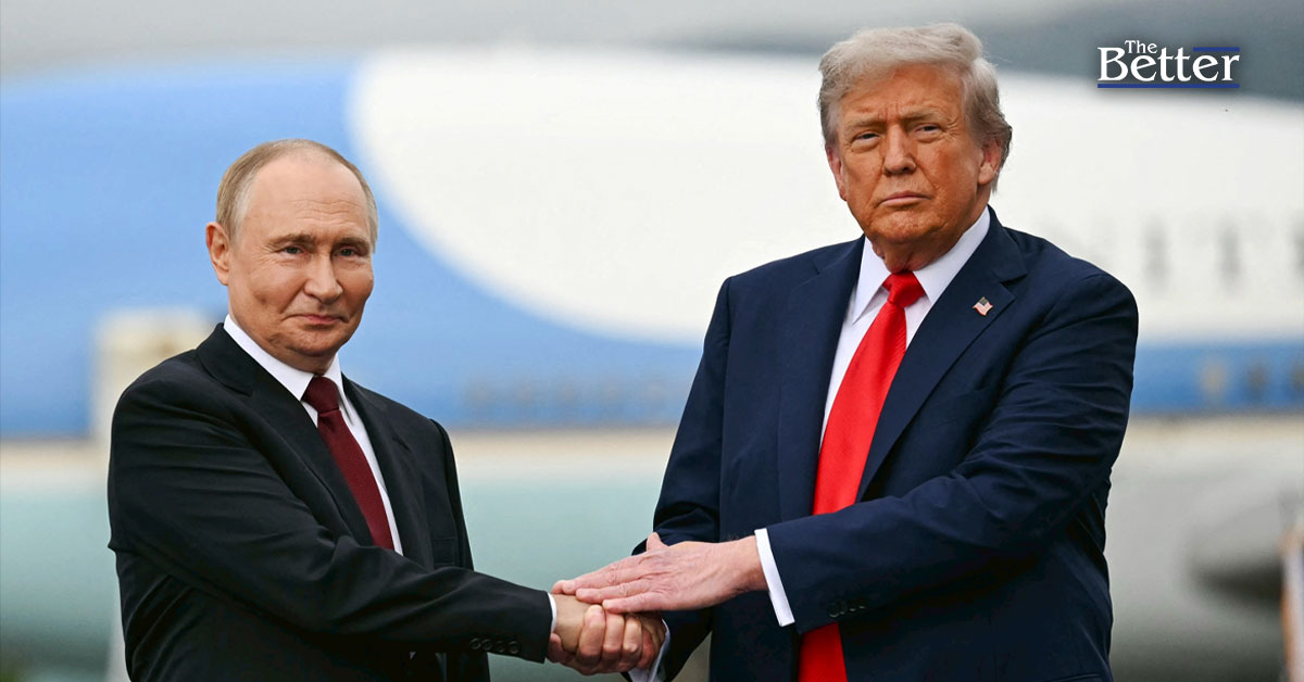 Photo - ภาพเด่น - ประธานาธิบดีโดนัลด์ ทรัมป์ แห่งสหรัฐฯ ทักทายประธานาธิบดีวลาดิมีร์ ปูติน แห่งรัสเซียบนลานจอดเครื่องบิน หลังจากเดินทางมาถึงฐานทัพร่วมเอลเมนดอร์ฟ-ริชาร์ดสัน ในเมืองแองเคอเรจ รัฐอลาสกา เมื่อวันที่ 15 สิงหาคม 2568 ตามเวลาสหรัฐฯ ปูตินเดินทางมารัฐอลาสกาตามคำเชิญของทรัมป์ ซึ่งถือเป็นการเยือนประเทศตะวันตกครั้งแรกของเขา นับตั้งแต่ที่เขาสั่งการรุกรานยูเครนในปี 2565 ซึ่งคร่าชีวิตผู้คนไปหลายหมื่นคน (Photo by ANDREW CABALLERO-REYNOLDS / AFP)