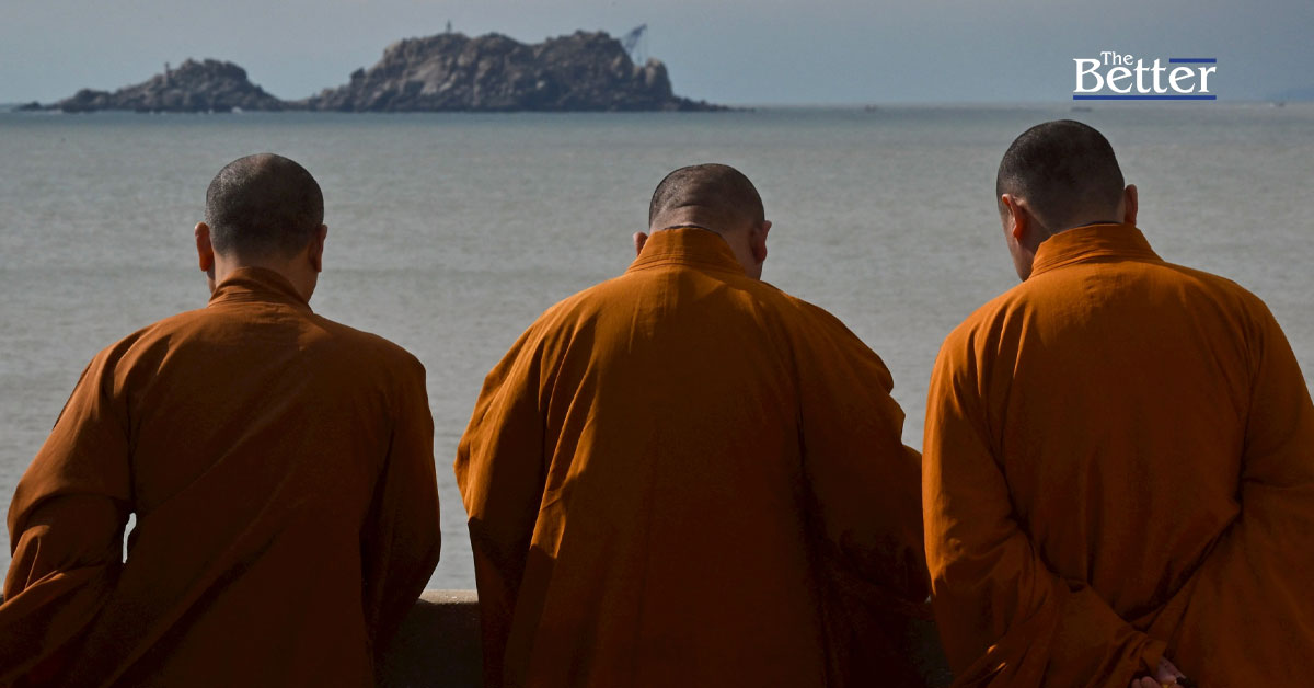 Photo - (ภาพประกอบข่าว บุคลในภาพไม่เกี่ยวกับเนื้อหา) - พระสงฆ์มองดูทะเลที่วัดบนเกาะผิงถาน ซึ่งเป็นจุดที่ใกล้ที่สุดในประเทศจีนกับเกาะหลักของไต้หวัน ในมณฑลฝูเจี้ยน ทางตะวันออกเฉียงใต้ของจีน เมื่อวันที่ 11 ธันวาคม พ.ศ. 2567 (ภาพโดย ADEK BERRY / AFP)