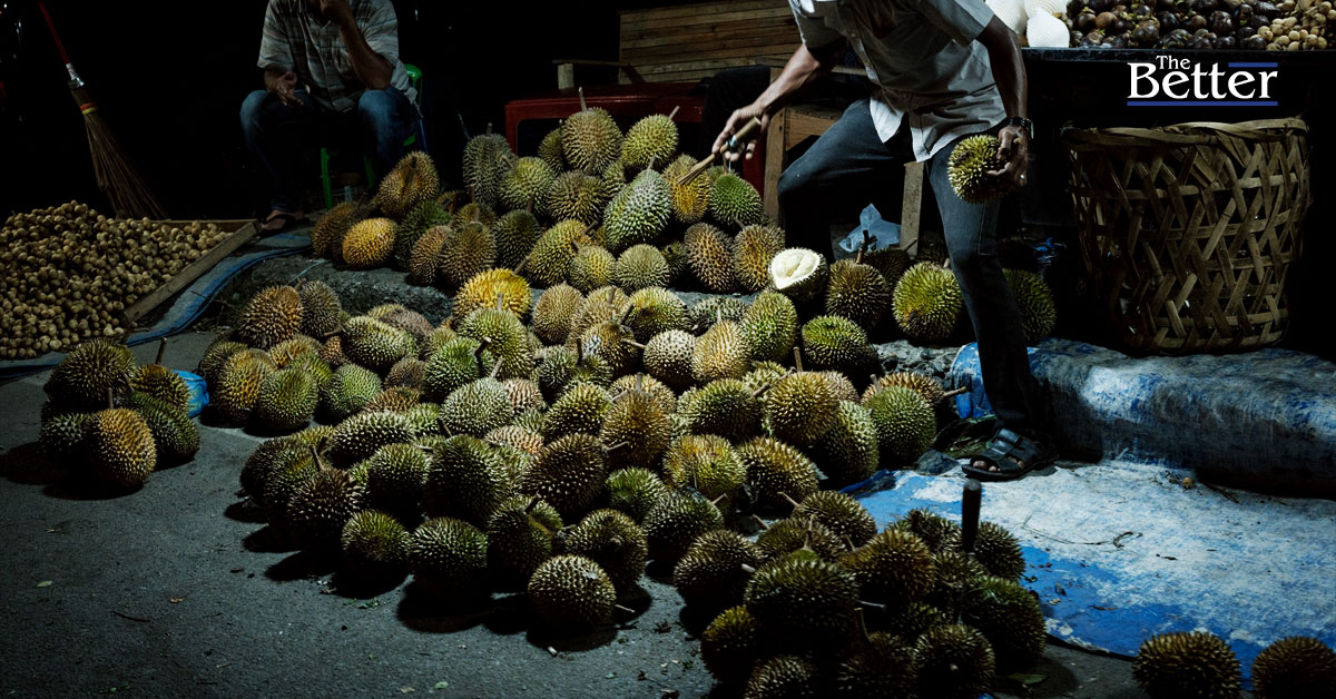 Photo - (ภาพประกอบข่าว) ชายคนหนึ่งขายทุเรียนบนถนนในบันดาอาเจะห์ เมื่อวันที่ 26 ธันวาคม 2567 (ภาพโดย Yasuyoshi CHIBA / AFP)