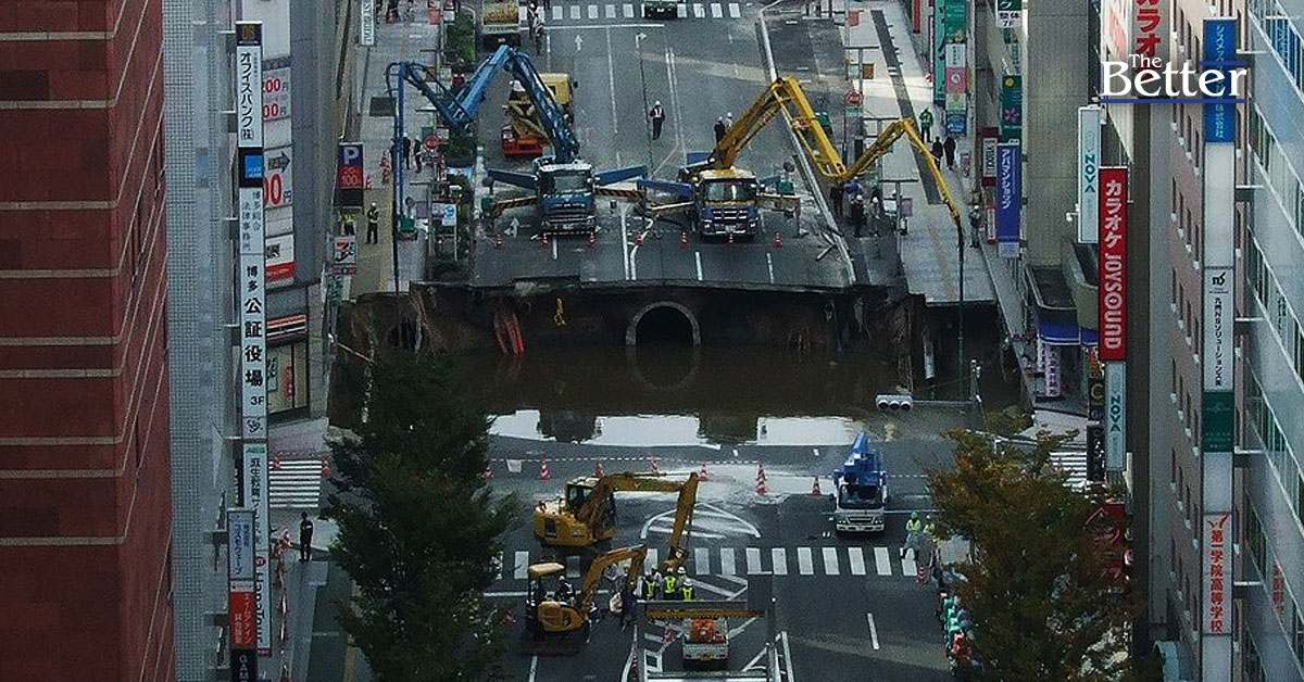 พื้นที่รอบสถานีฮากาตะเป็นย่านธุรกิจที่เรียกได้ว่าเป็นหัวใจสำคัญของเกาะคิวชู และเพื่อรักษากิจกรรมทางเศรษฐกิจและชีวิตความเป็นอยู่ของประชาชน จึงจำเป็นต้องฟื้นฟูเส้นทางชีวิตให้เร็วที่สุดเท่าที่จะเป็นไปได้ ดังนั้น ศูนย์รับมือเหตุฉุกเฉินจึงได้เสนอแผนฟื้นฟูที่จะใช้เวลาทั้งหมดหนึ่งสัปดาห์ โดยสองวันแรกจะถมหลุมให้เต็ม 70% อีกสามวันต่อมาจะซ่อมแซมเส้นทางชีวิต และอีกสองวันต่อมาจะถมหลุมที่เหลือ ปูถนนเหนือพื้นดิน และติดตั้งสิ่งอำนวยความสะดวก
