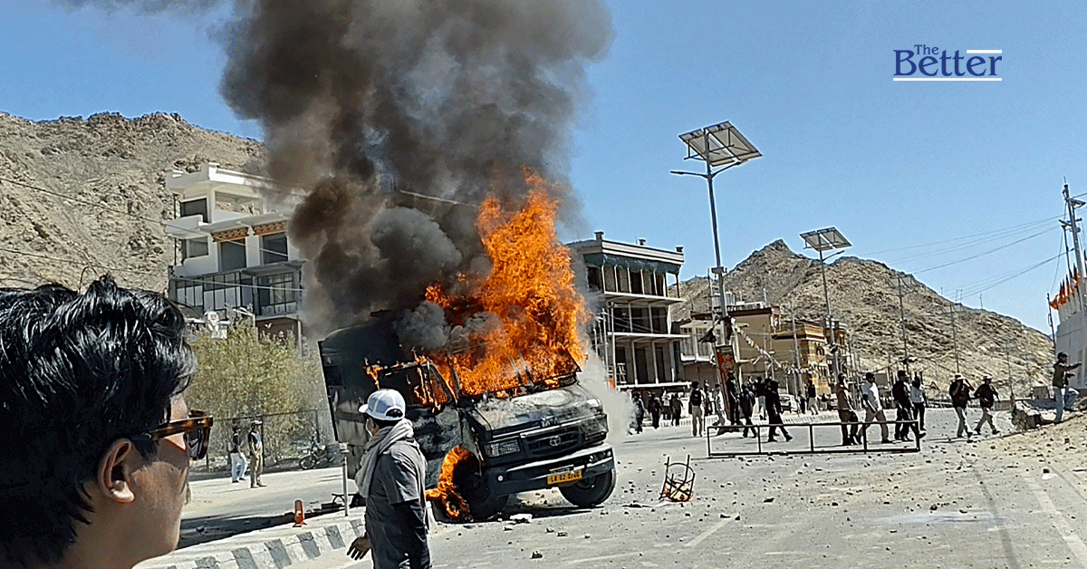 ในเมืองเลห์ ซึ่งเป็นเมืองหลักของแคว้นนี้ ผู้ประท้วงได้เผารถตำรวจและสำนักงานพรรคภารตียชนตาของนายกรัฐมนตรีนเรนทรา โมดี ขณะที่เจ้าหน้าที่ได้ยิงแก๊สน้ำตาและใช้กระบองสลายฝูงชน ตำรวจกล่าว
