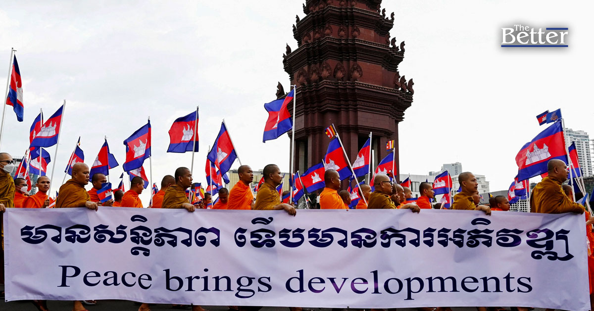 Photo - พระสงฆ์ชาวกัมพูชาร่วมเดินขบวนเพื่อสันติภาพ ณ อนุสาวรีย์เอกราชในกรุงพนมเปญ เมื่อวันที่ 10 สิงหาคม พ.ศ. 2568 หลังจากเกิดความขัดแย้งทางชายแดนกับประเทศไทย (ภาพโดย TANG CHHIN Sothy / AFP)