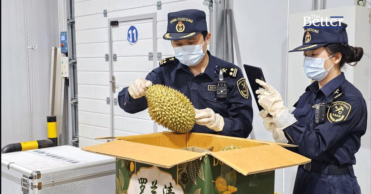 (แฟ้มภาพซินหัว : เจ้าหน้าที่ศุลกากรตรวจสอบทุเรียนนำเข้าจากไทยที่ด่านรถไฟโม๋ฮัน มณฑลอวิ๋นหนานทางตะวันตกเฉียงใต้ของจีน)