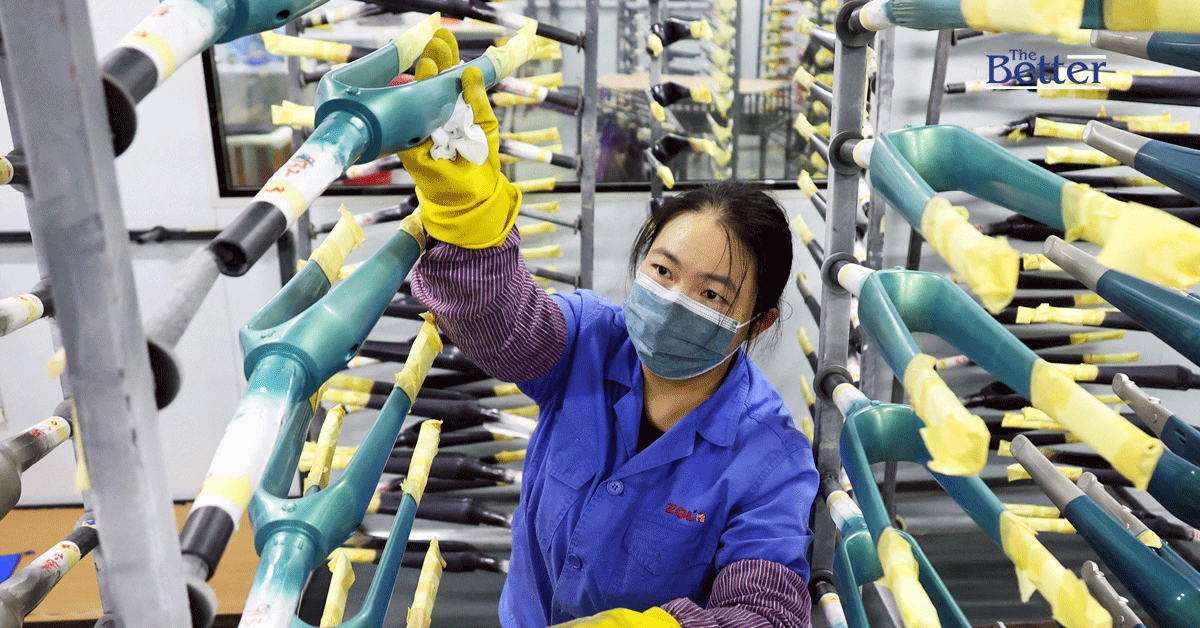 Photo - คนงานกำลังตรวจสอบชิ้นส่วนจักรยานที่ทำจากคาร์บอนไฟเบอร์ที่โรงงานผลิตจักรยานในเมืองเหลียนหยุนกั่ง มณฑลเจียงซู ทางตะวันออกของจีน เมื่อวันที่ 14 พฤศจิกายน พ.ศ. 2568 (ภาพโดย AFP) / CHINA OUT