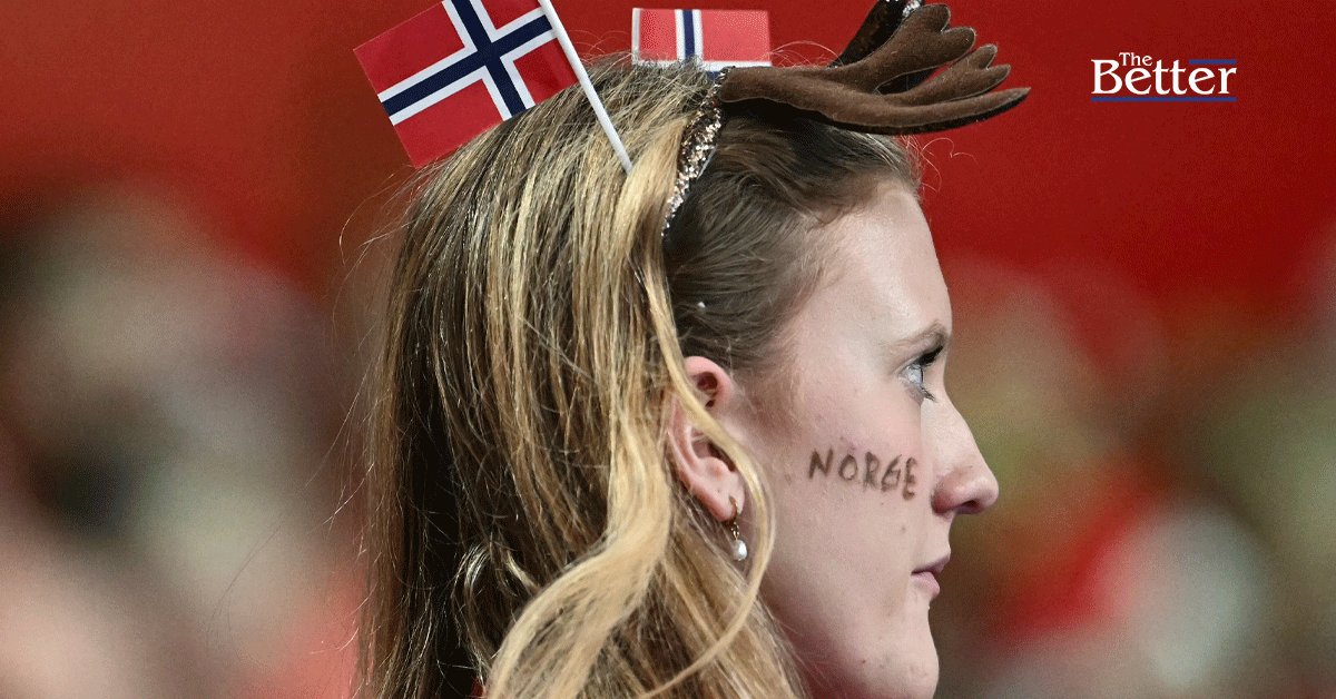 Photo - (ภาพประกอบข่าว) - แฟนบอลรายหนึ่งมีธงชาตินอร์เวย์ติดผมไว้ข้างหน้า ก่อนการแข่งขันแฮนด์บอลชิงแชมป์ยุโรปหญิงยูโร 2024 ระหว่างเดนมาร์กกับนอร์เวย์ ที่กรุงเวียนนา ประเทศออสเตรีย เมื่อวันที่ 15 ธันวาคม 2024 (ภาพโดย Joe Klamar / AFP)