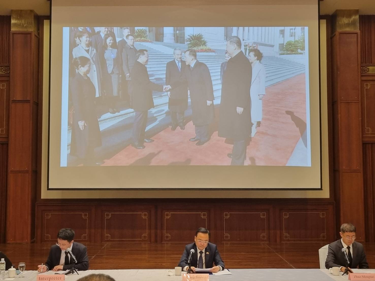 วันนี้ สถานเอกอัครราชทูตจีนประจำประเทศไทยจัดการบรรยายสรุปเกี่ยวกับการเสด็จฯ เยือนจีนของพระบาทสมเด็จพระวชิรเกล้าเจ้าอยู่หัว โดยเอกอัครราชทูต จางเจี้ยนเว่ย ซึ่งได้ติดตามการเสด็จครั้งนี้อย่างใกล้ชิด ได้ถ่ายทอดผลสรุปและความสำเร็จจากการเสด็จครั้งประวัติศาสตร์ รวมถึงแง่มุมอันมีค่าจากการสานสัมพันธ์อันล้ำค่าของทั้งสองประเทศในครั้งนี้