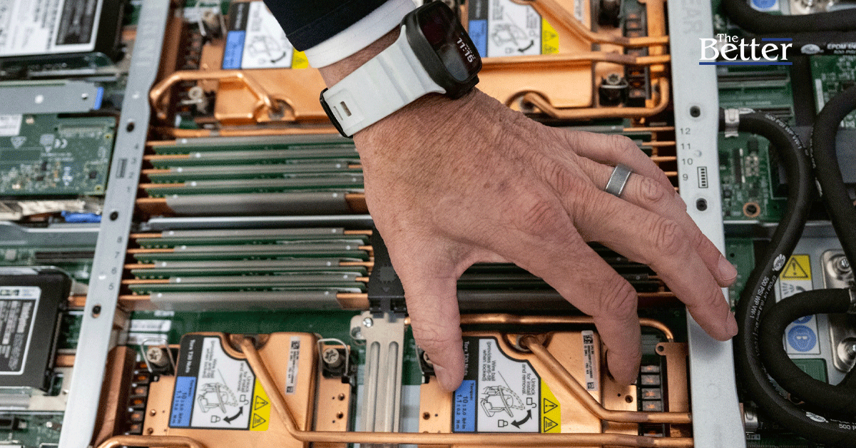 Photo - จอแสดงผลแสดงซีพียูและคอยล์ระบายความร้อนที่หุ้มด้วยทองแดงจากเซิร์ฟเวอร์ Lenovo ณ ศูนย์ข้อมูล Digital Realty Innovation Lab (DRIL) ในเมืองแอชเบิร์น รัฐเวอร์จิเนีย เมื่อวันที่ 12 พฤศจิกายน 2568 (ภาพโดย ANDREW CABALLERO-REYNOLDS / AFP)