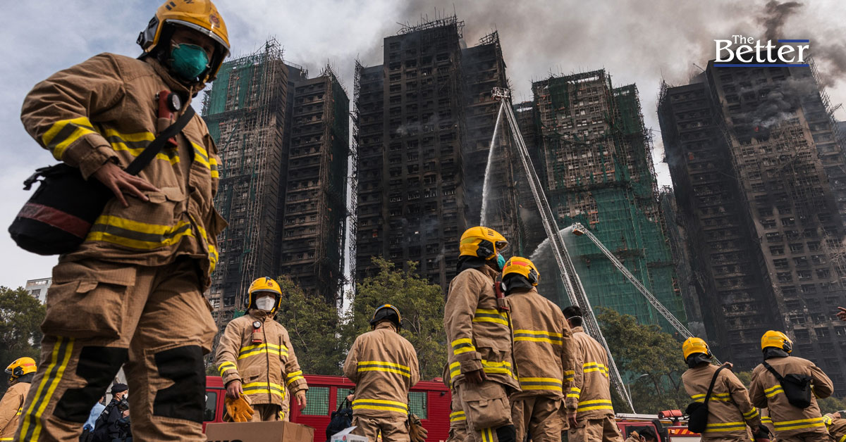 Photo - เจ้าหน้าที่ดับเพลิงเตรียมพร้อมหลังจากเกิดเพลิงไหม้ครั้งใหญ่ที่ลุกลามไปทั่วอาคารอพาร์ตเมนต์หลายหลังที่โครงการที่พักอาศัย Wang Fuk Court ในเขตไทโป ฮ่องกง เมื่อวันที่ 27 พฤศจิกายน 2568 (Photo by DALE DE LA REY / AFP)