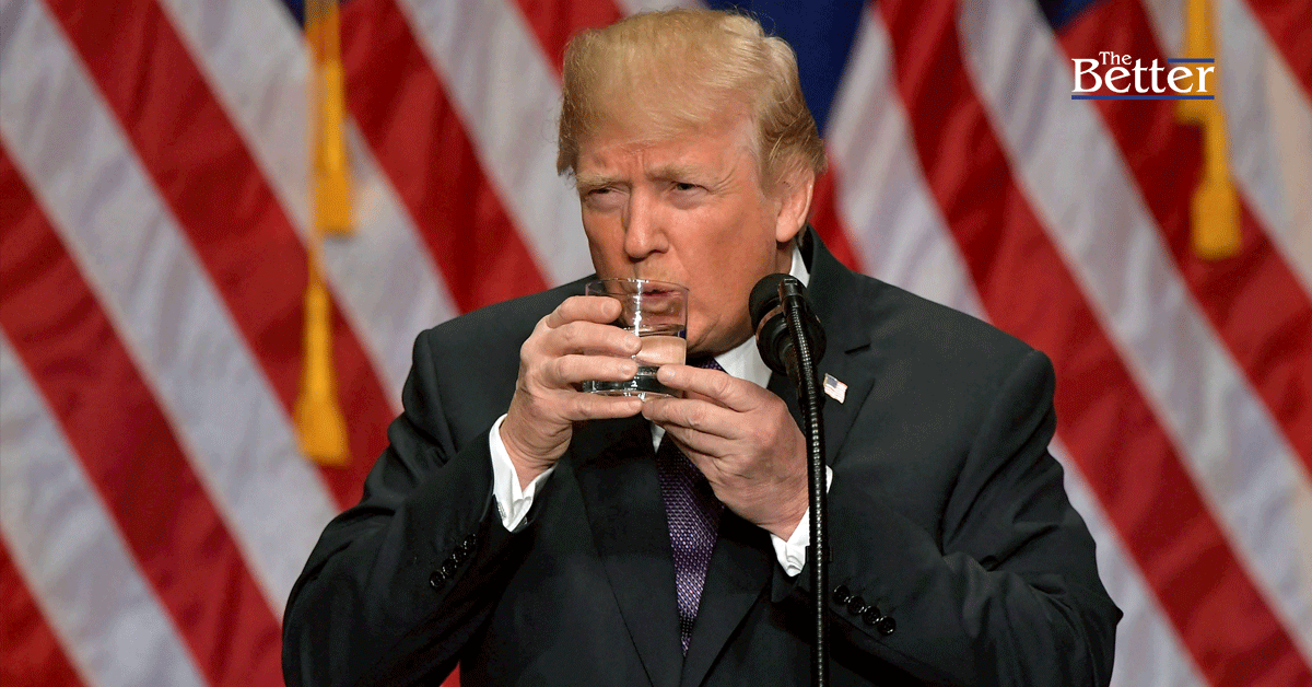 "คุณเห็นไหม ผมไม่ดื่มแอลกอฮอล์ ทุกคนรู้เรื่องนั้น แต่ผมเคยพูดหลายครั้งแล้วว่า ถ้าผมดื่ม ผมคงมีโอกาสสูงที่จะเป็นคนติดเหล้า ผมพูดแบบนั้นหลายครั้งเกี่ยวกับตัวเอง มันเป็นบุคลิกที่ครอบงำมาก" ทรัมป์กล่าว