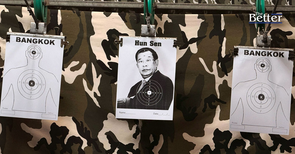 Photo - ภาพของ ฮุน เซน ประธานวุฒิสภาของกัมพูชา ถูกนำมาแขวนไว้เป็นเป้าหมายในบูธเกมยิงปืนแห่งหนึ่งในกรุงเทพฯ เมื่อวันที่ 18 ธันวาคม 2025 (Photo by STR / AFP)
