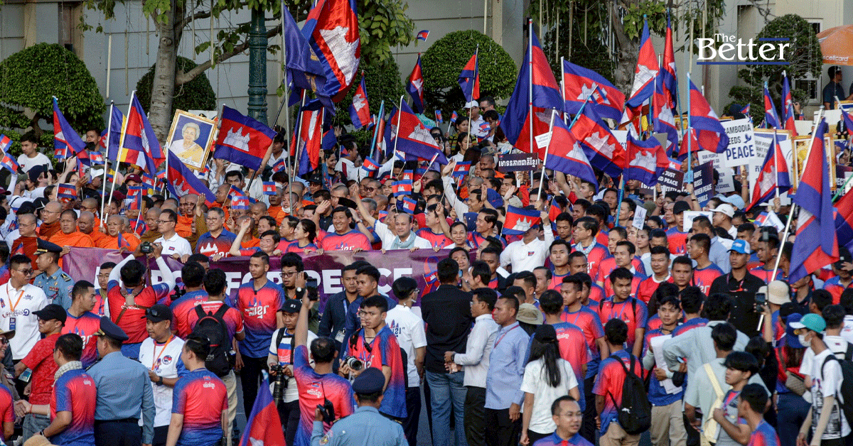 Photo - ประชาชนโบกธงชาติกัมพูชาขณะเข้าร่วมการเดินขบวนเพื่อสนับสนุนกัมพูชาและเรียกร้องสันติภาพในความขัดแย้งชายแดนกัมพูชา-ไทย ที่กรุงพนมเปญ เมื่อวันที่ 18 ธันวาคม 2025 (ภาพโดย AFP)