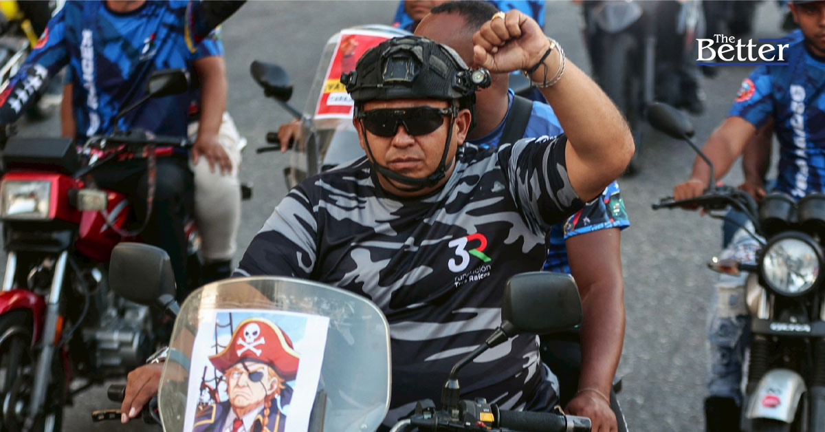 Photo - เมื่อวันที่ 22 ธันวาคม 2025 นักขี่มอเตอร์ไซค์คนหนึ่งติดรูปประธานาธิบดีโดนัลด์ ทรัมป์ แห่งสหรัฐอเมริกาในชุดโจรสลัดไว้บนรถมอเตอร์ไซค์ของเขา เข้าร่วมขบวนรถประท้วงต่อต้านสหรัฐอเมริกาในกรุงการากัส เพื่อประท้วงการยึดเรือบรรทุกน้ำมันของเวเนซุเอลา