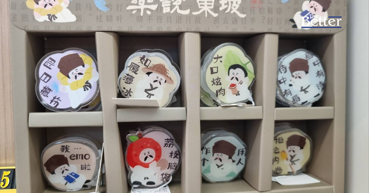 Photo - ผลิตภัณฑ์เหวินช่วงที่ทำเป็นคลิปหนีบในธีม "ซูตงพอ" (东坡说乐) กวีเอกของจีนสมัยราชวงศ์ซ่งพร้อมกับข้อความทีเล่นทีจริง จัดจำหน่ายที่ร้านค้าแห่งหนึ่งถนนเป่ยจิงลู่ เมืองกว่างโจว มณฑลกวางตุ้ง ภาพโดยผู้เขียน