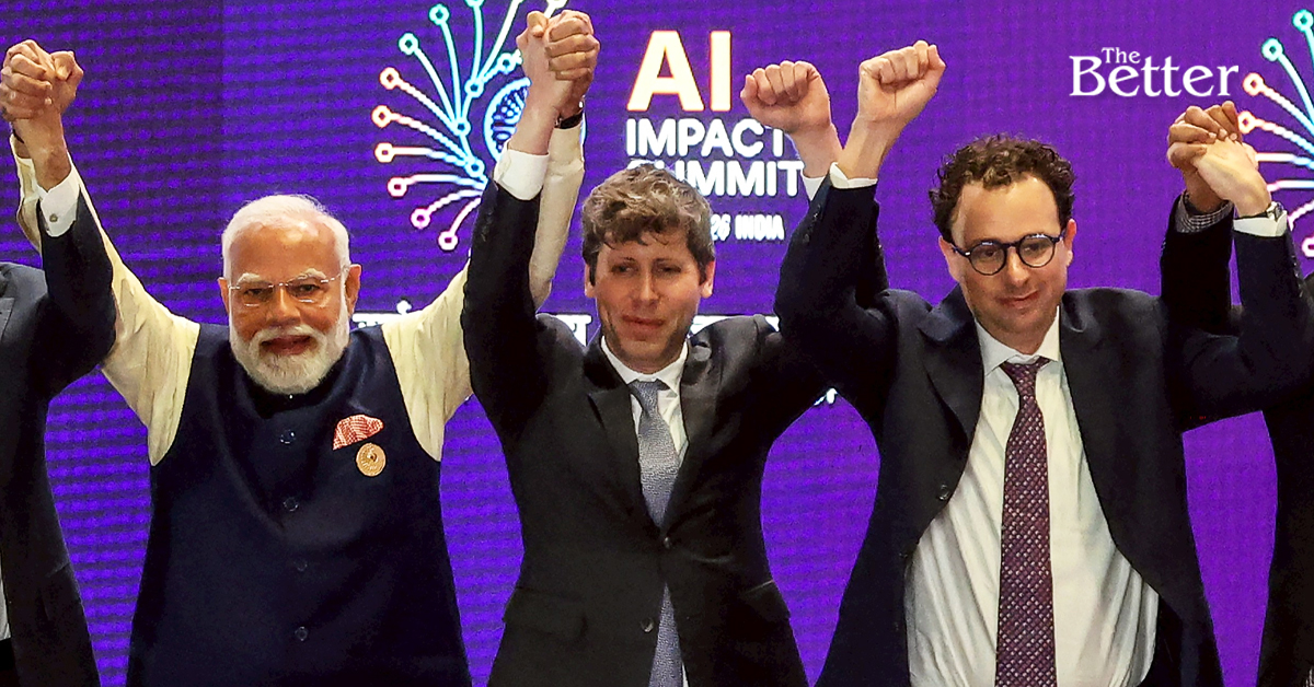 Photo - นายกรัฐมนตรีของอินเดีย นเรนทรา โมดี (ซ้าย) ถ่ายภาพหมู่ร่วมกับผู้นำบริษัทด้านปัญญาประดิษฐ์ รวมถึงซีอีโอของ OpenAI แซม อัลท์แมน (กลาง) และซีอีโอของ Anthropic ดาริโอ อโมเดอี (ขวา) ในงาน AI Impact Summit ที่กรุงนิวเดลี เมื่อวันที่ 19 กุมภาพันธ์ 2026 แต่ภาพนี้ถูกวิจารณ์ว่า อัลท์แมน กับ อโมเดอี พยายามหลีกเลี่ยงที่จะจับมือกัน (Photo by LUDOVIC MARIN / AFP)