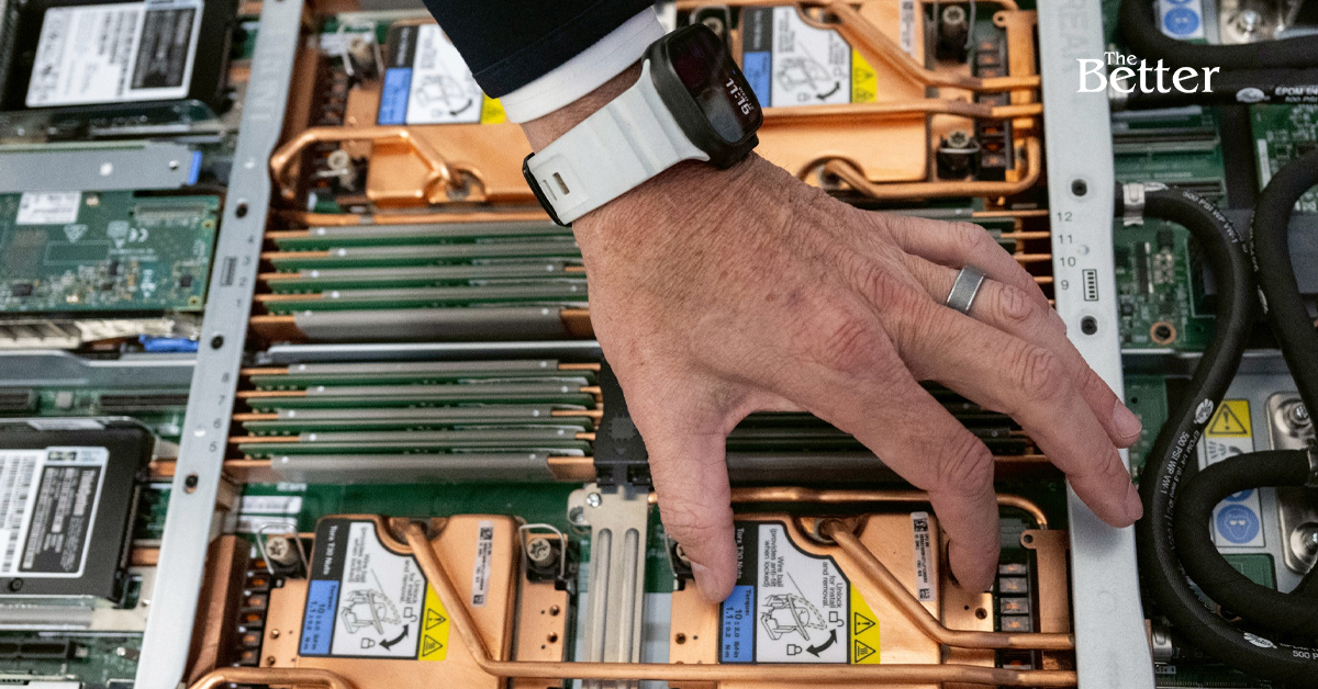Photo - ภาพแสดงซีพียูและคอยล์ระบายความร้อนที่หุ้มด้วยทองแดงจากเซิร์ฟเวอร์ Lenovo ที่ศูนย์ข้อมูล Digital Realty Innovation Lab (DRIL) ในเมืองแอชเบิร์น รัฐเวอร์จิเนีย เมื่อวันที่ 12 พฤศจิกายน 2025 (ภาพโดย ANDREW CABALLERO-REYNOLDS / AFP)