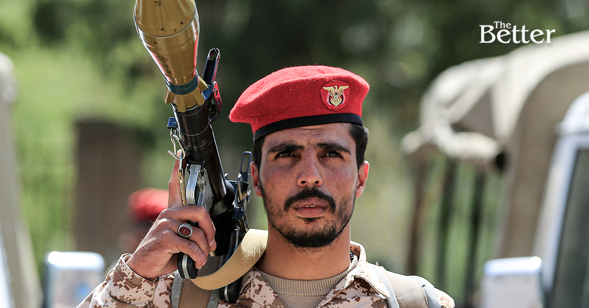 Photo - สมาชิกของกลุ่มฮูตีที่ได้รับการสนับสนุนจากอิหร่าน ชูอาวุธของเขาในระหว่างการชุมนุมเพื่อแสดงความเป็นน้ำหนึ่งใจเดียวกันกับอิหร่านและเลบานอน ท่ามกลางสงครามระหว่างสหรัฐฯ และอิสราเอลกับอิหร่าน ในกรุงซานา เมื่อวันที่ 6 เมษายน 2026 (Photo by MOHAMMED HUWAIS / AFP)