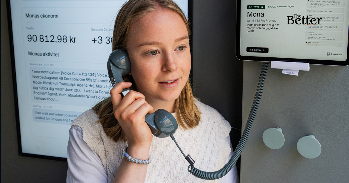 Photo - ฮันนา ปีเตอร์สัน จากทีมงานด้านเทคนิคของ Andon Labs กำลังพูดคุยกับผู้ช่วย AI ชื่อ 'โมนา' ซึ่งทำงานบน Google Gemini ที่ Andon Café ในสตอกโฮล์ม เมื่อวันที่ 27 เมษายน 2026 ร้านกาแฟแห่งนี้ดูเหมือนร้านกาแฟทั่วไป แต่ร้านกาแฟในสตอกโฮล์มแห่งนี้ดำเนินการโดยแชทบอท AI ทั้งหมด โดยมีบาริสต้าที่เป็นมนุษย์คอยรับออเดอร์ Andon Labs บริษัทที่อยู่เบื้องหลังการทดลองนี้ได้ให้เช่า Mona แชทบอท AI ที่ทำงานบน Gemini ผู้ช่วย AI ของ Google และเธอก็ทำส่วนที่เหลือทั้งหมด: จ้างพนักงาน จัดทำเมนู และดูแลเรื่องอุปกรณ์ประจำวัน โดยมีข้อผิดพลาดเล็กน้อยระหว่างทาง เช่น การสั่งซื้อผ้าเช็ดปาก 6,000 ชิ้น (Photo by JONATHAN NACKSTRAND / AFP)