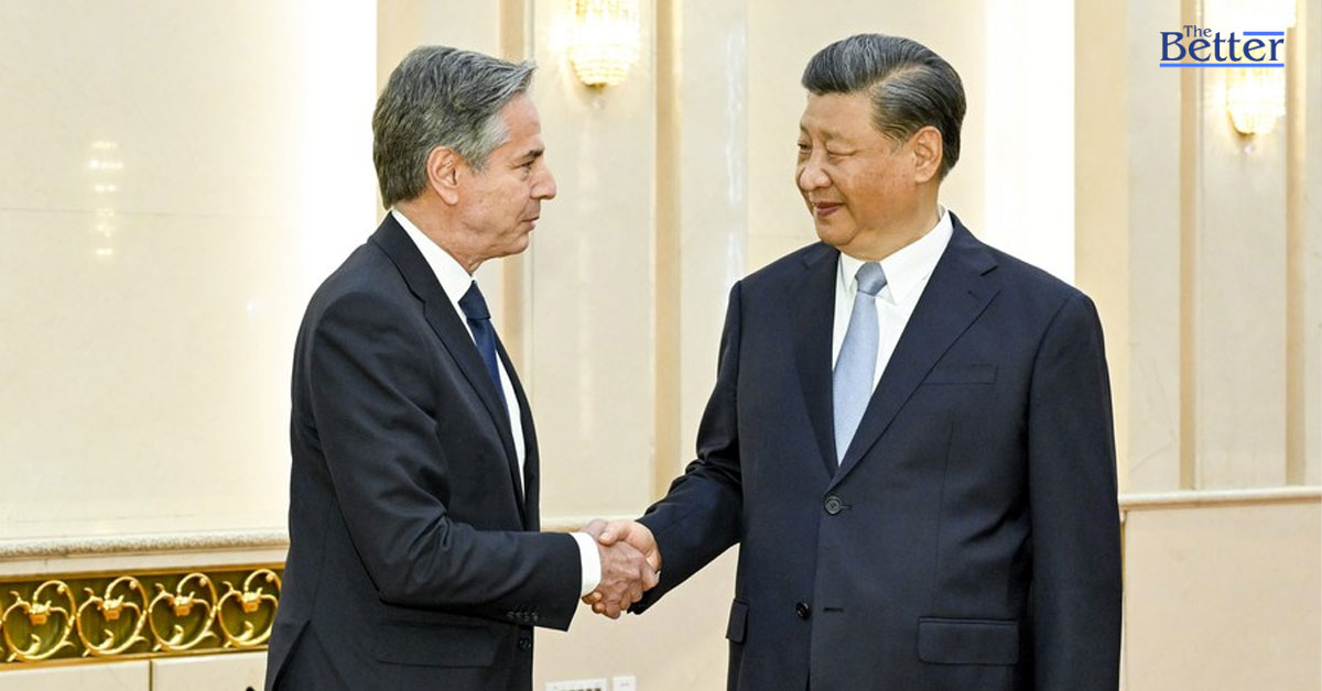 ซินหัวรายงานว่า สีจิ้นผิง ประธานาธิบดีจีน พบปะกับแอนโทนี บลิงเคน รัฐมนตรีว่าการกระทรวงการต่างประเทศของสหรัฐฯ ณ อาคารมหาศาลาประชาชน กรุงปักกิ่ง เมืองหลวงของจีน