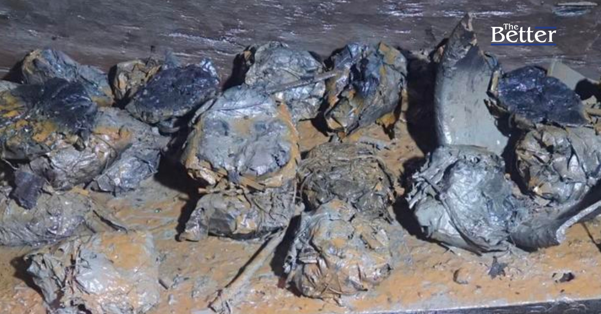 “อาหารห่อใบไม้” ขนาดเส้นผ่านศูนย์กลางราว 10-15 เซนติเมตร ถูกห่อด้วยใบไม้กว้างและมัดด้วยเชือกหรือก้านไม้ โดยผลตรวจสอบผ่านกล้องจุลทรรศน์พบอาหารเหล่านี้ 39 จาก 40 ห่อ ถูกยัดด้วยข้าวดิบที่ยังมีเปลือกอยู่ ส่วนอีกห่อถูกยัดด้วยข้าวฟ่าง