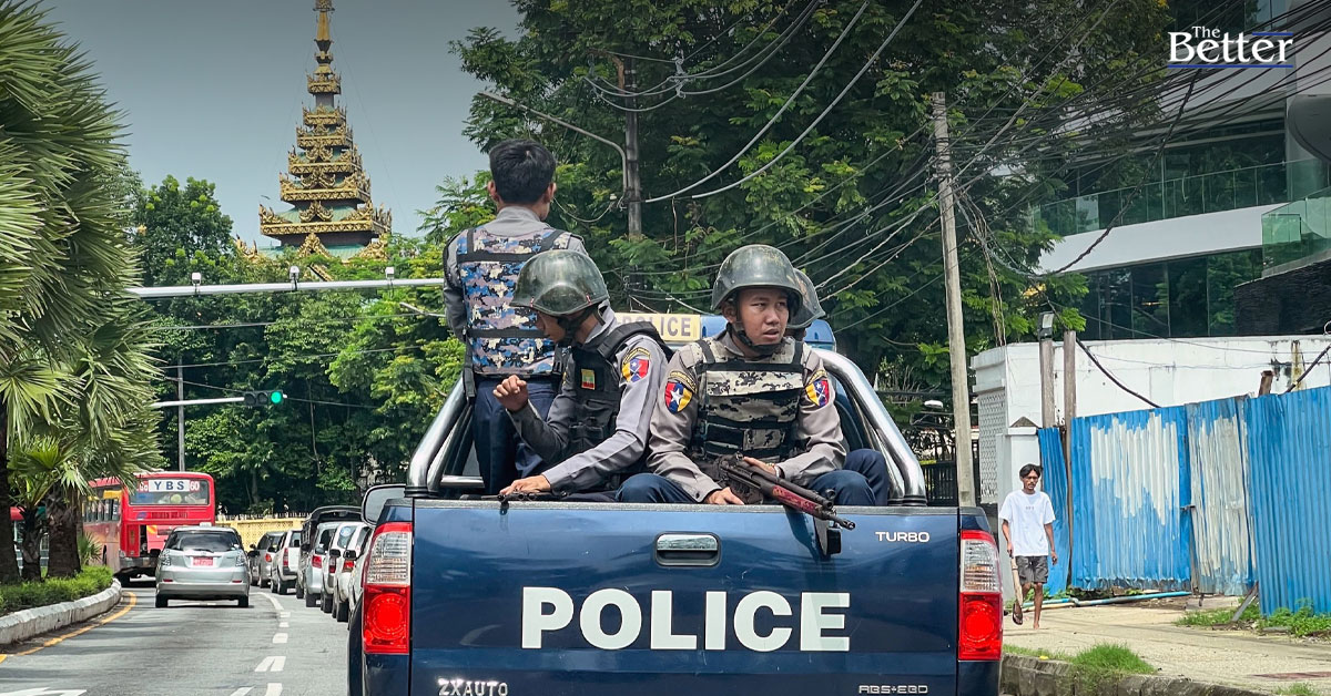 Photo - ตำรวจลาดตระเวนบนถนนแห่งหนึ่งในย่างกุ้งเมื่อวันที่ 19 กรกฎาคม 2566 เนื่องในวันวีรชน 76 ปี ซึ่งเป็นวันครบรอบการลอบสังหารผู้นำเอกราช รวมถึงนายพลอองซาน บิดาของผู้นำอองซานซูจี ที่ถูกปลดและถูกคุมขังในปัจจุบัน (Photo by AFP)