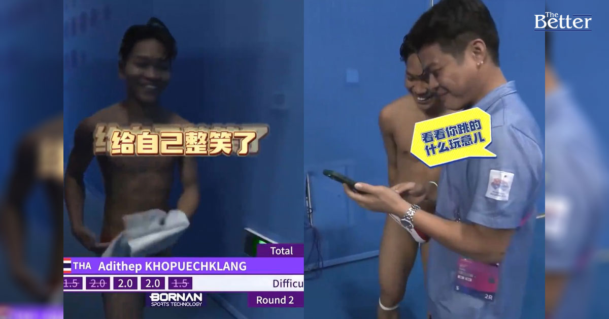 กลายเป็นเทรนดิ้งในโซเชียลมีเดียจีน หลังจากที่ อดิเทพ ขอพืชกลาง นักกีฬากระโดดน้ำชาวไทยกระโดดพลาดจนทำให้เสียคะแนน แต่เมื่อขึ้นจากสระน้ำนักกีฬาไทยกลับยิ้มและหัวเราะกับความผิดพลาดของตัวเอง และโค้ชก็ยังหัวเราะตามไปด้วย เป็นภาพที่สร้างความประทับใจให้กับผู้ชมชาวจีนอย่างมาก