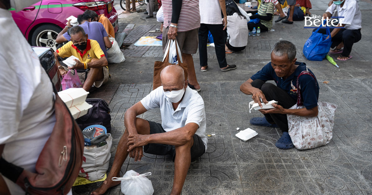 “ถ้าฝนตกหนักเกินไป ฉันจะกินขนมปัง 7-Eleven กับซอสมะเขือเทศ” หญิงวัย 73 ปีบอกกับ AFP ที่เต็นท์ส่งอาหารของมูลนิธิช่วยเหลือชุมชนกรุงเทพ ซึ่งให้อาหารแก่คนไร้บ้านและคนยากจนในเมือง 500 คนทุกวัน