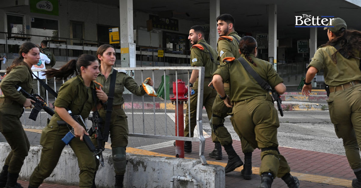 ภาพประกอบข่าว - ทหารอิสราเอลวิ่งหาที่กำบังเมื่อได้ยินเสียงไซเรนเตือนในเมืองคีรยัต ชโมนา (Kiryat Shmona) ทางตอนเหนือ ใกล้ชายแดนเลบานอน เมื่อวันที่ 23 ตุลาคม 2023 (ภาพโดย YURI CORTEZ / AFP)