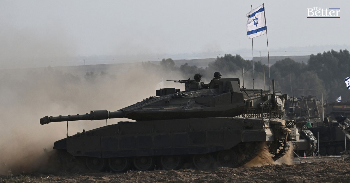รถถังเมอร์คาวาของอิสราเอลเคลื่อนมาประจำการร่วมกับยานเกราะอื่นๆ ตามแนวชายแดนอิสราเอลติดกับฉนวนกาซาเมื่อวันที่ 24 ตุลาคม พ.ศ. 2566 ท่ามกลางการสู้รบที่ดำเนินอยู่ระหว่างอิสราเอลและกลุ่มฮามาสปาเลสไตน์ พลเรือนหลายพันคน ทั้งชาวปาเลสไตน์และชาวอิสราเอล เสียชีวิตตั้งแต่วันที่ 7 ตุลาคม พ.ศ. 2566 หลังจากที่กลุ่มติดอาวุธฮามาสจากปาเลสไตน์ซึ่งมีฐานอยู่ในฉนวนกาซาบุกโจมตีทางตอนใต้ของอิสราเอลในการโจมตีที่ไม่เคยเกิดขึ้นมาก่อน ซึ่งก่อให้เกิดสงครามที่อิสราเอลประกาศต่อกลุ่มฮามาสพร้อมกับระเบิดตอบโต้ในฉนวนกาซา (Photo by Aris MESSINIS / AFP)